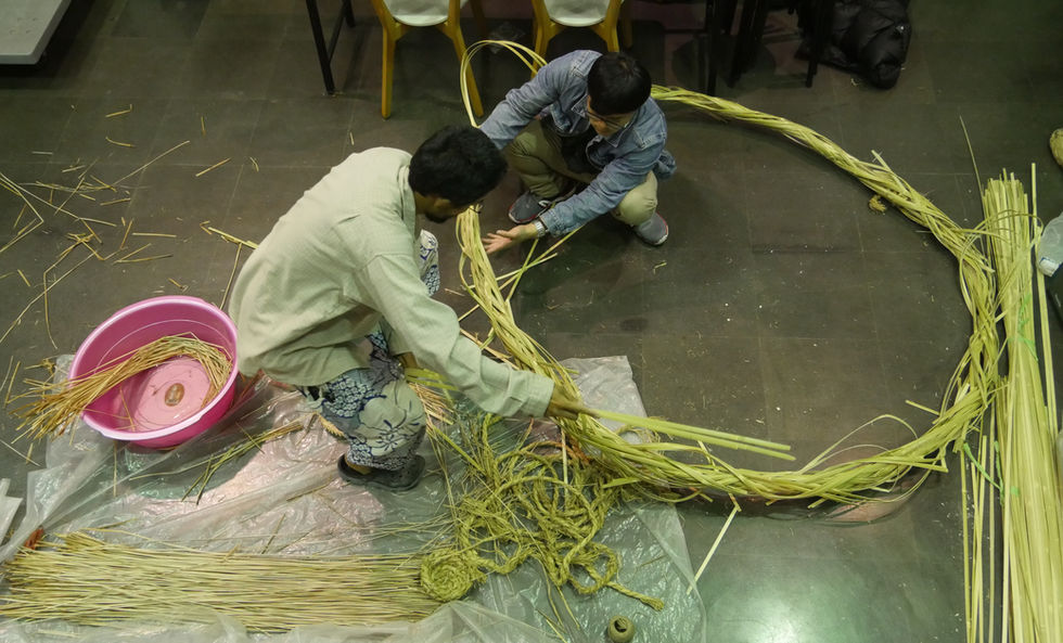 There is a company in Nantou Puli that makes materials for paper hats. So Ayaka Nakamura decided to use it as the main material of this exhibition. She thinks the organic form that she makes has the image of a water drop. For her, water is the image of connecting all.